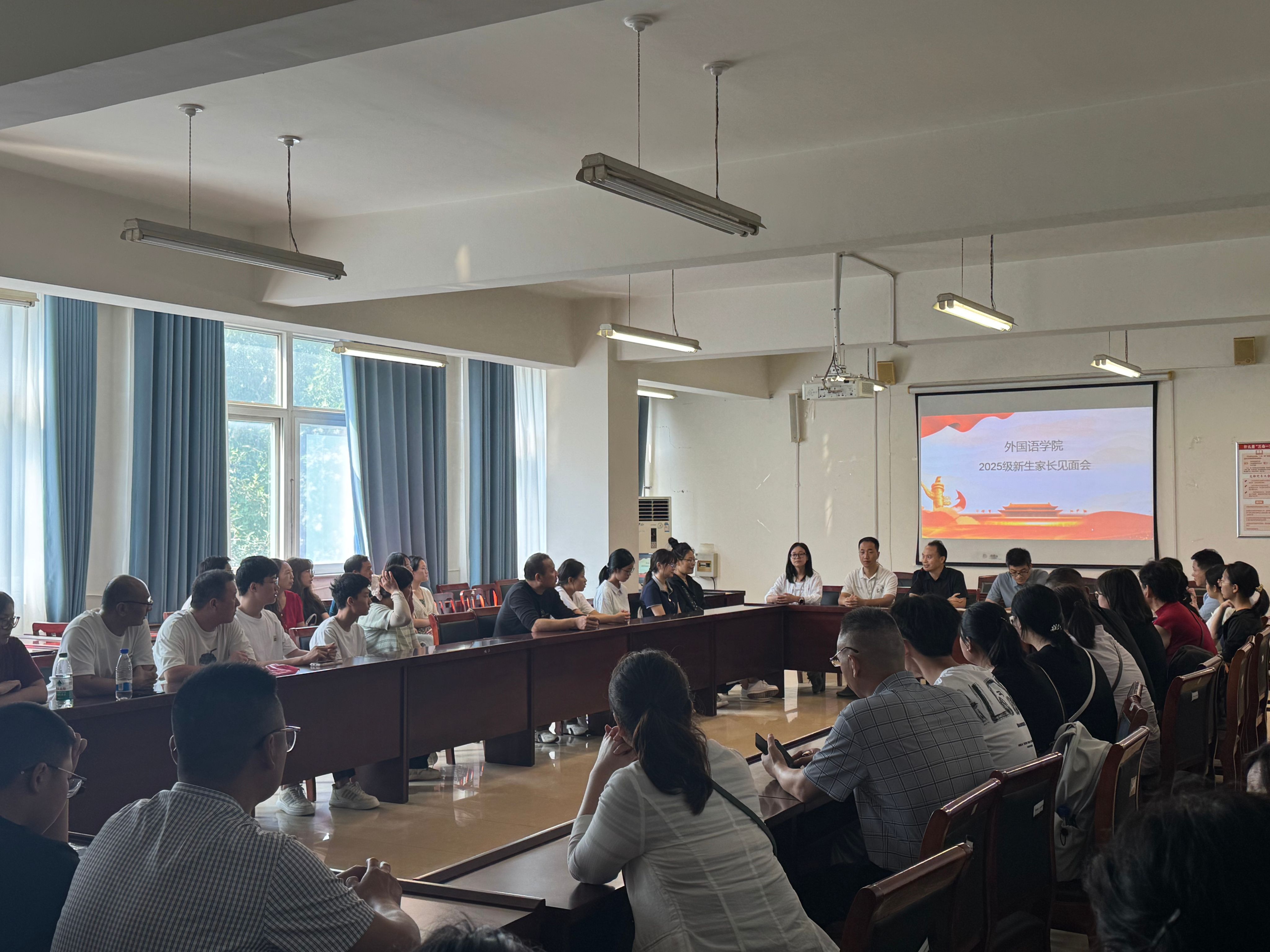 为帮助新生家长全面了解学院办学特色与育人体系,搭建家校协同育人平台,9 月 13 日,外国语学院在A10-205召开 2025 级新生家长会。学院党委副书记王体、副院长原斌华、英语教研室主任、学院团委书记、新生辅导员老师及学院各专业50余名学生家长代表参加座谈会。