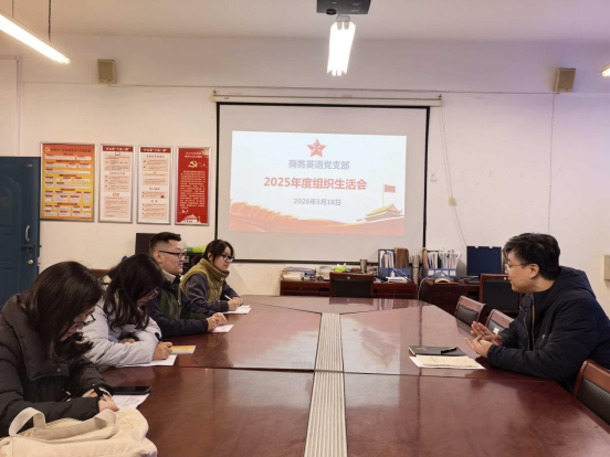 3月18日下午,外国语学院商务英语教研室党支部召开2025年度组织生活会。外国语学院党委书记王孟以普通党员身份全程参会,与支部全体党员教师一同交流思想、检视剖析问题、明确奋进方向。
